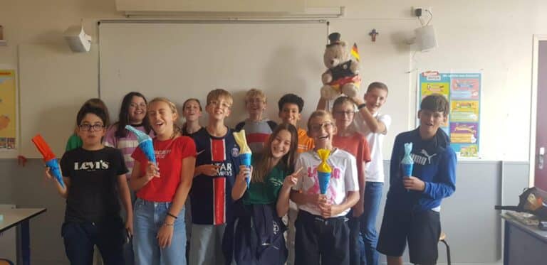 La reprise des cours d’allemand se fait dans la bonne humeur en 5e ! Accueil des nouveaux élèves germanistes avec la traditionnelle Schultüte (garnie de
