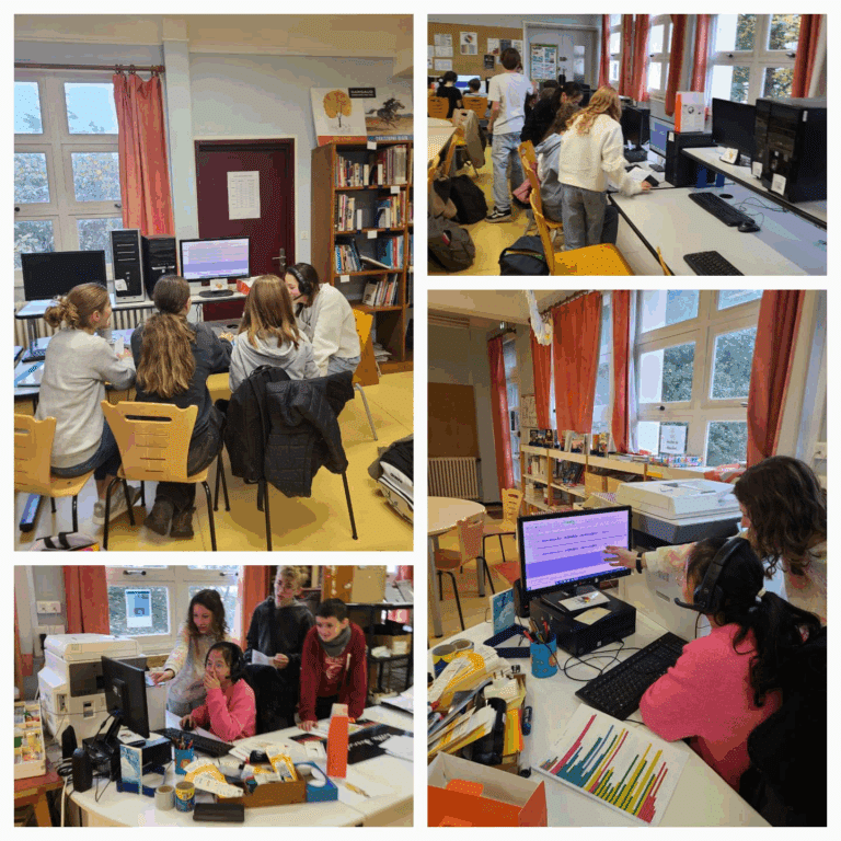 Fin de séquence en français pour les 5b avec madame Saunon avec l’enregistrement de leur Web radio. Moment extraordinaire de partage, de rire, de développement